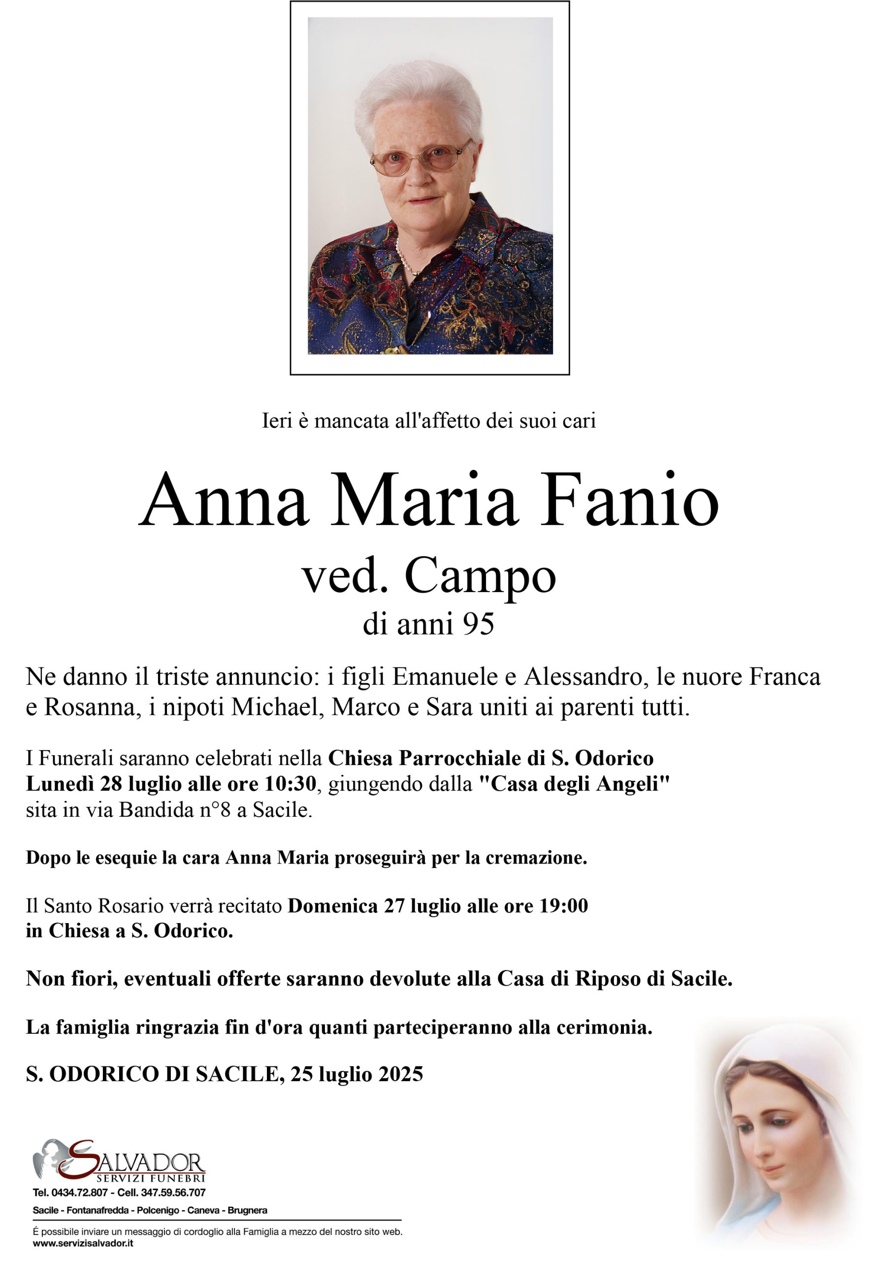 Compila i campi sottostanti e invia il messaggio di cordoglio per Anna Maria Fanio.