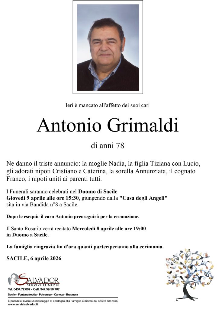 Compila i campi sottostanti e invia il messaggio di cordoglio per Antonio Grimaldi.