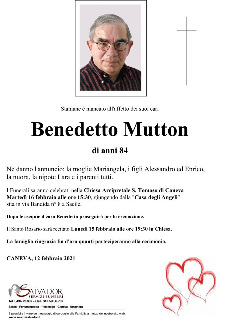 Compila i campi sottostanti e invia il messaggio di cordoglio per Benedetto Mutton.