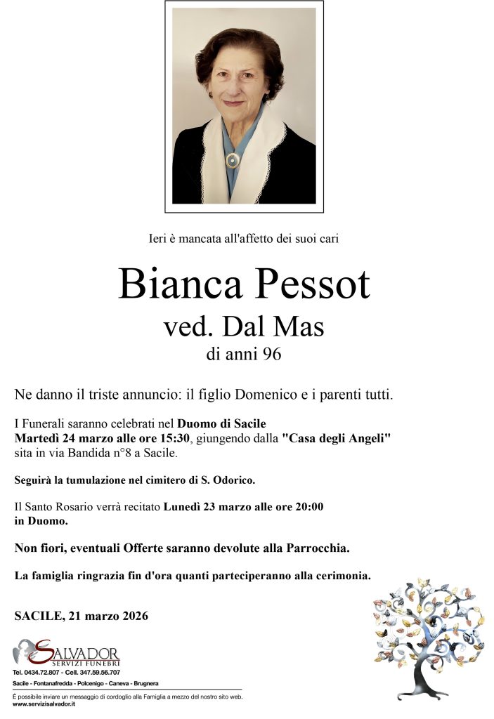 Compila i campi sottostanti e invia il messaggio di cordoglio per Bianca Pessot.