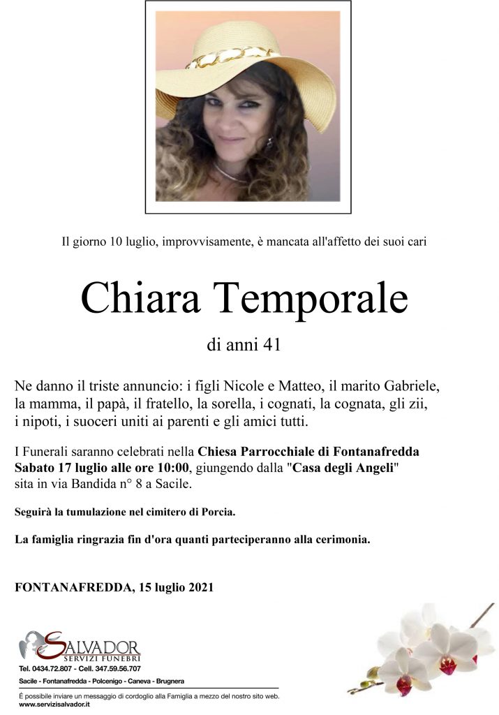 Compila i campi sottostanti e invia il messaggio di cordoglio per Chiara Temporale.