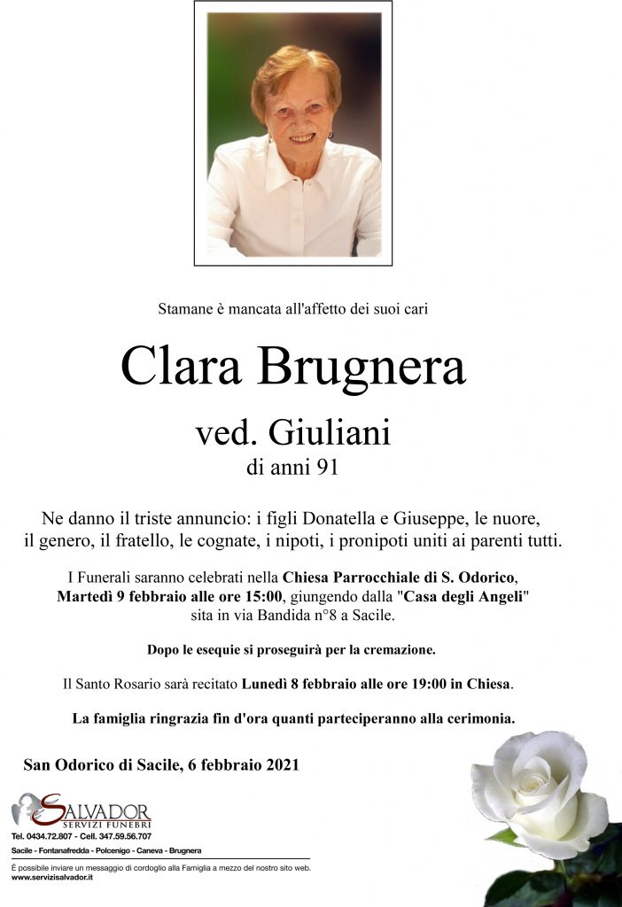 Compila i campi sottostanti e invia il messaggio di cordoglio per Clara Brugnera.
