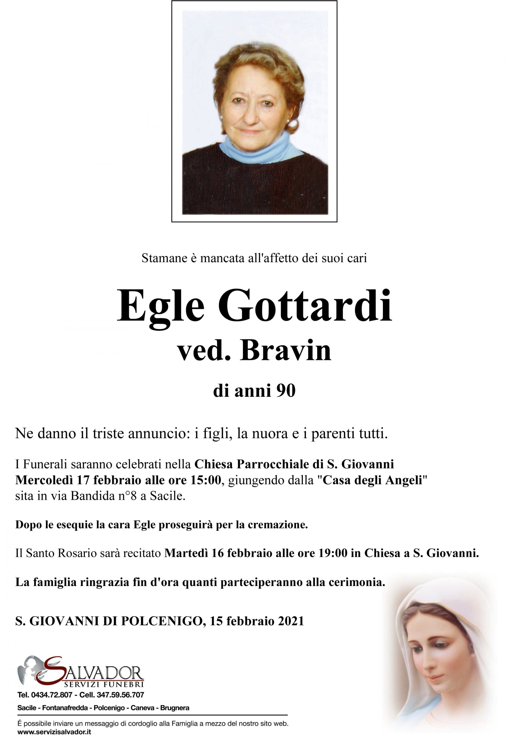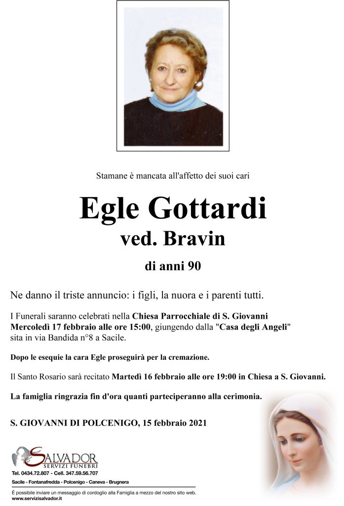 Compila i campi sottostanti e invia il messaggio di cordoglio per Egle Gottardi.