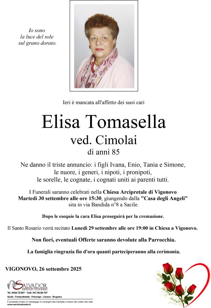 Compila i campi sottostanti e invia il messaggio di cordoglio per Elisa Tomasella.