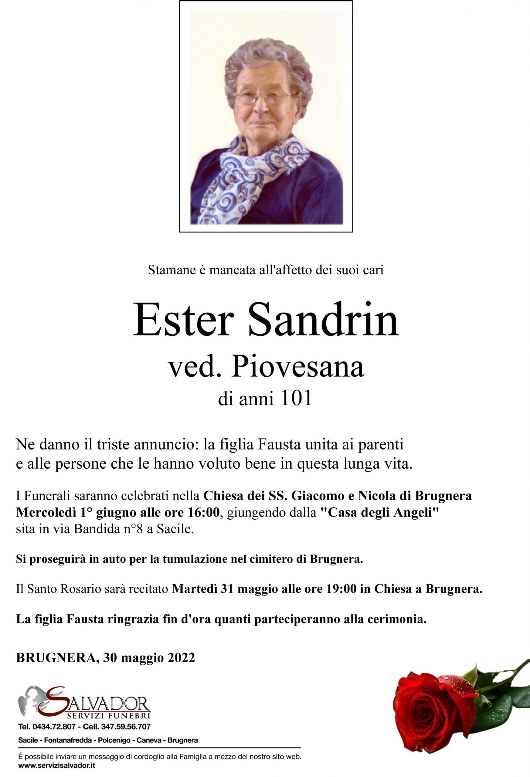 Compila i campi sottostanti e invia il messaggio di cordoglio per Ester Sandrin.