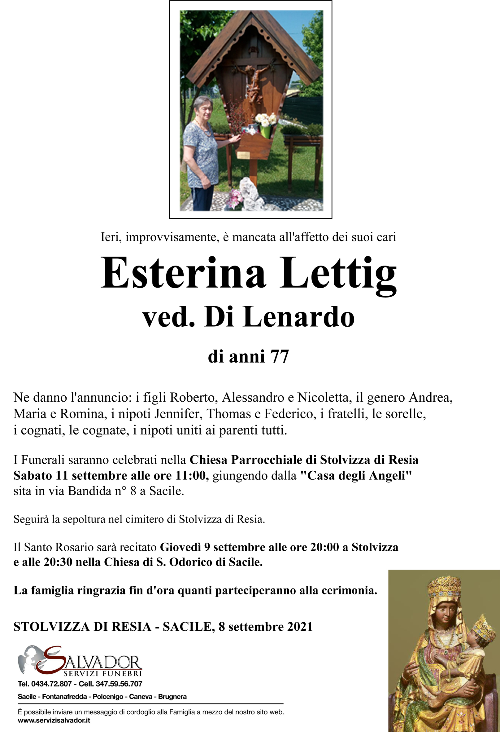 Compila i campi sottostanti e invia il messaggio di cordoglio per Esterina Lettig.