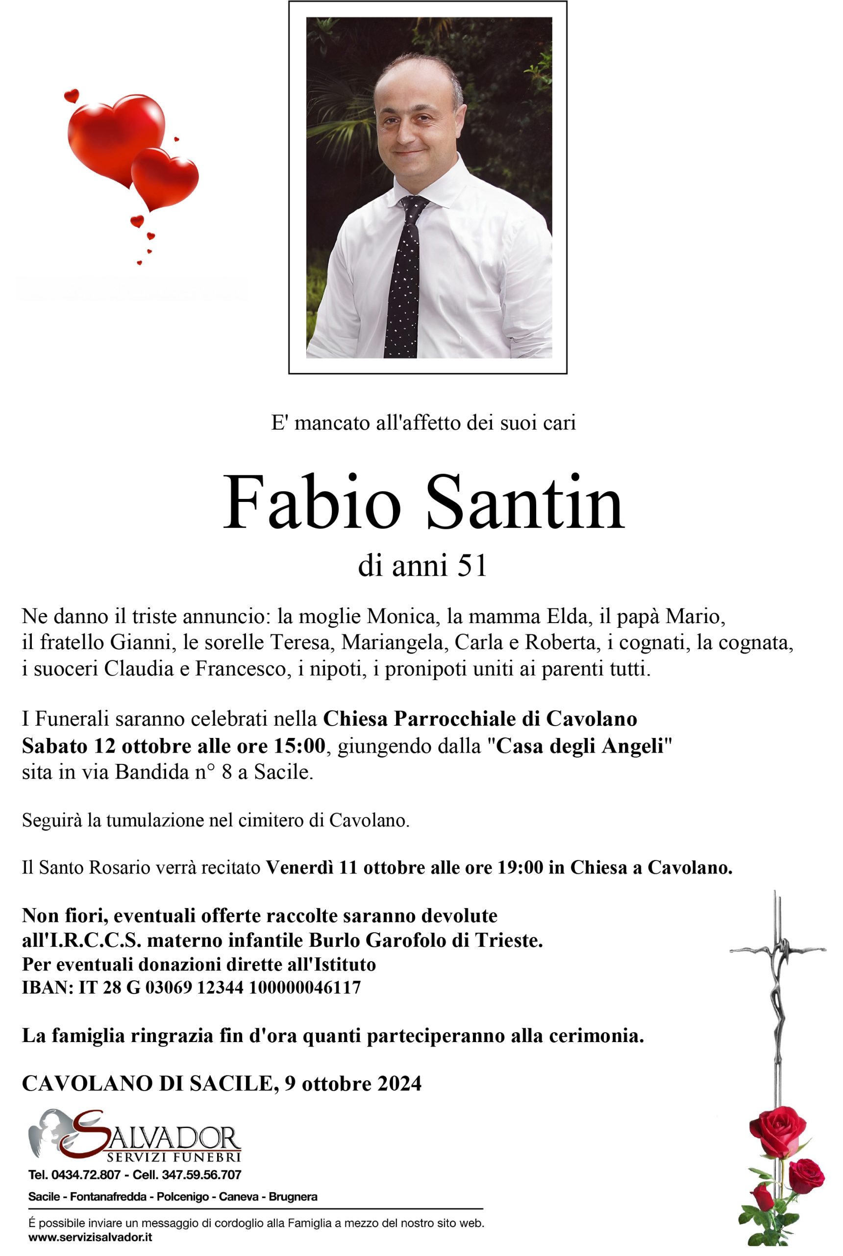 Compila i campi sottostanti e invia il messaggio di cordoglio per Fabio Santin.