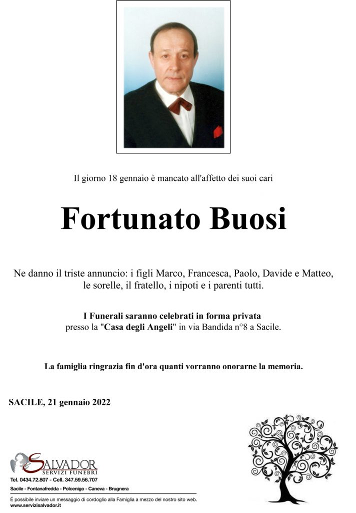 Compila i campi sottostanti e invia il messaggio di cordoglio per Fortunato Buosi.