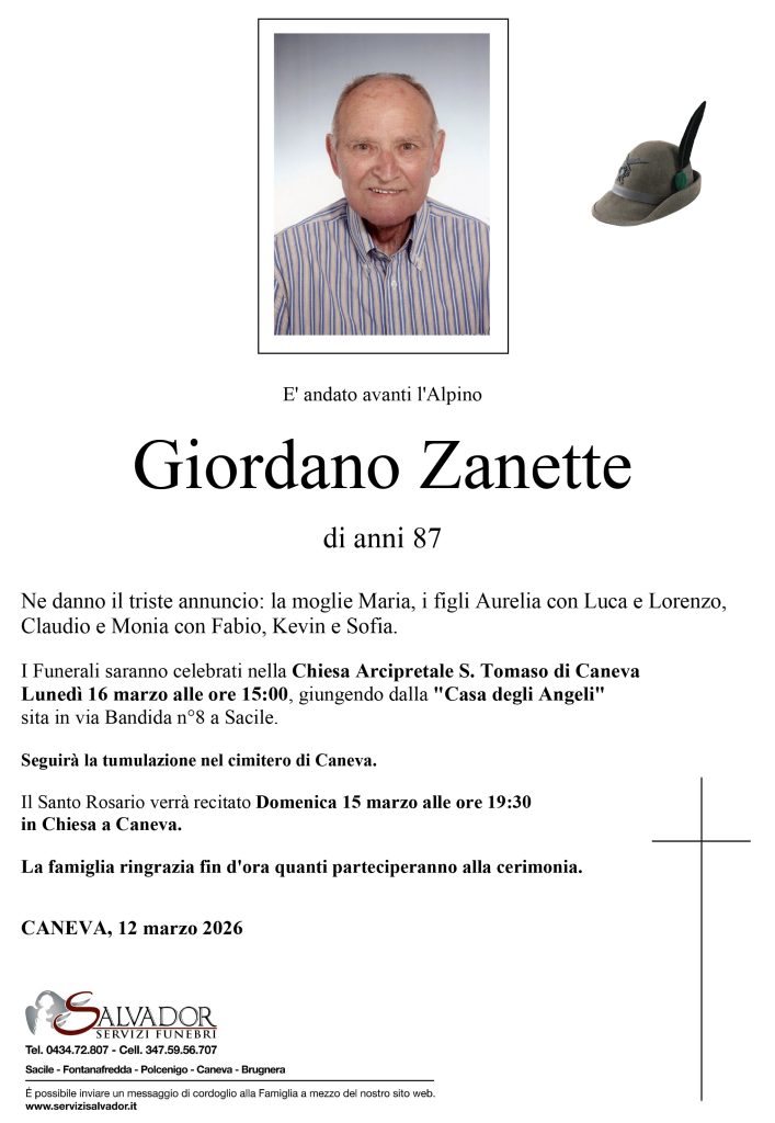 Compila i campi sottostanti e invia il messaggio di cordoglio per Giordano Zanette.