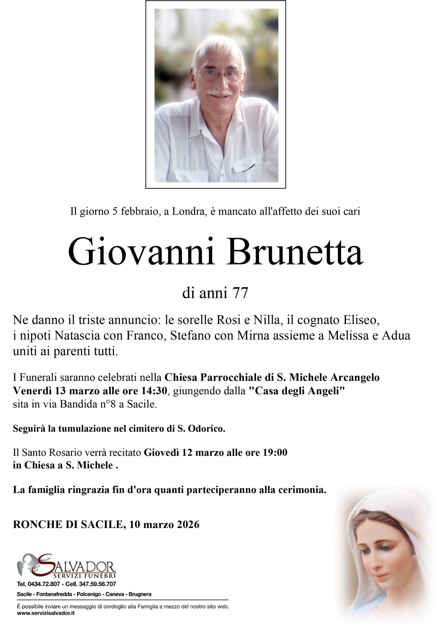 Sarà possibile dare un saluto al caro Giovanni a feretro chiuso