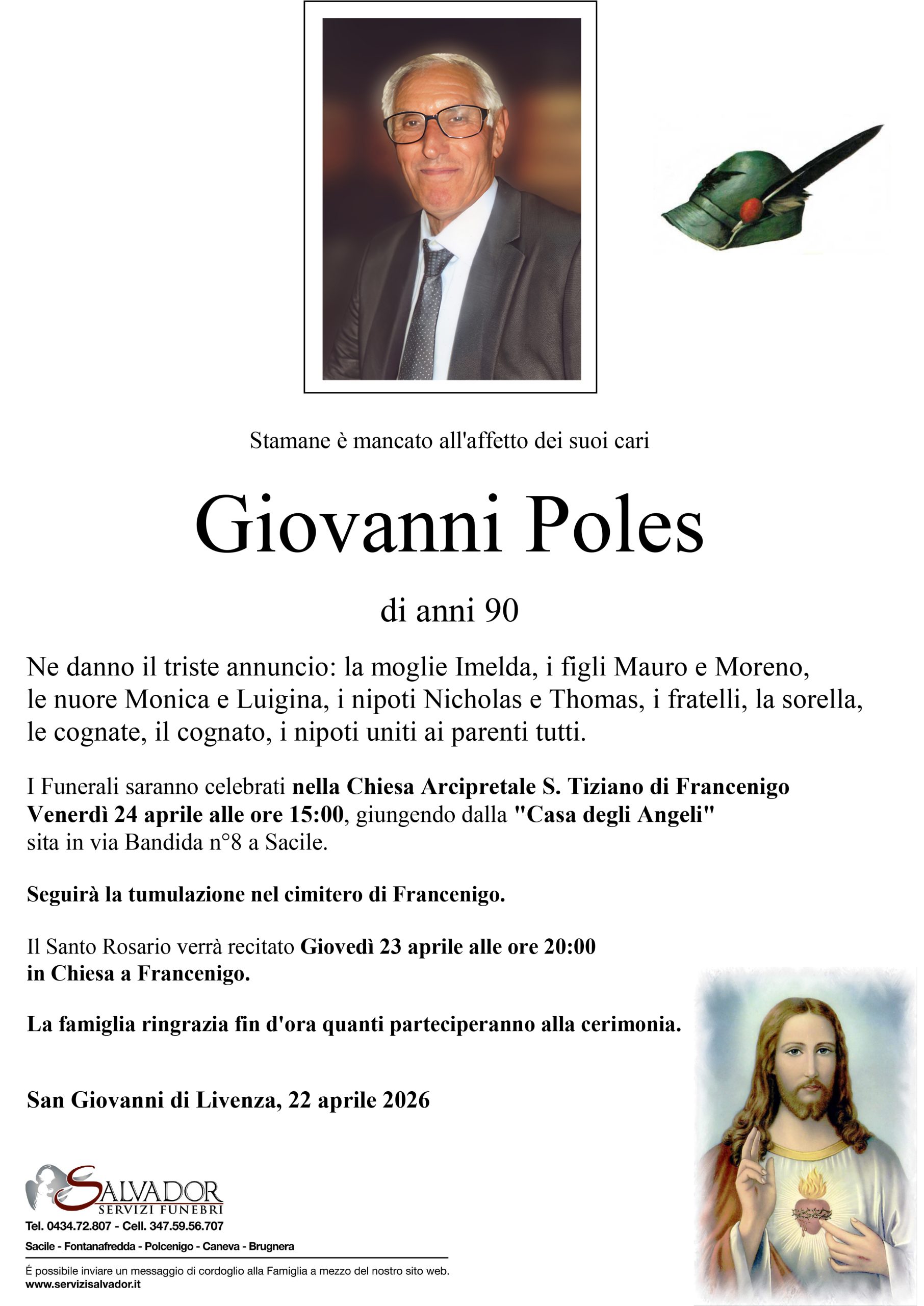Compila i campi sottostanti e invia il messaggio di cordoglio per Giovanni Poles.