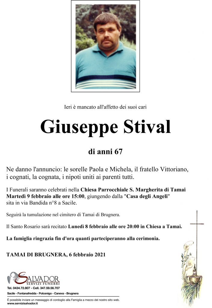 Compila i campi sottostanti e invia il messaggio di cordoglio per Giuseppe Stival.