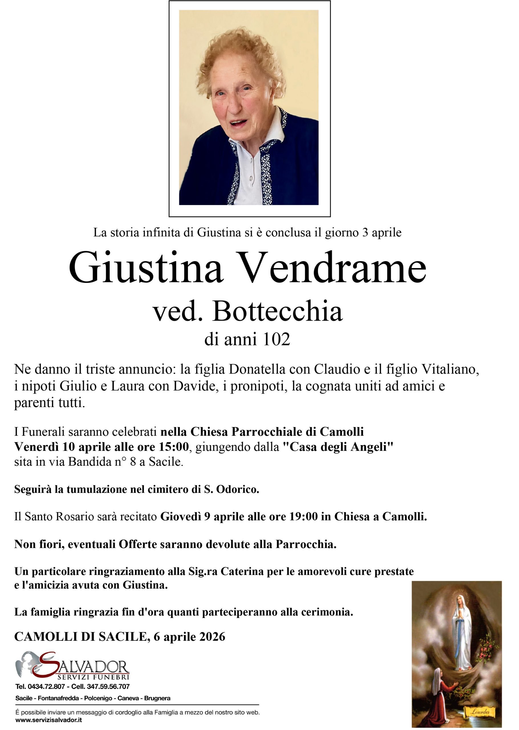 Compila i campi sottostanti e invia il messaggio di cordoglio per Giustina Vendrame.