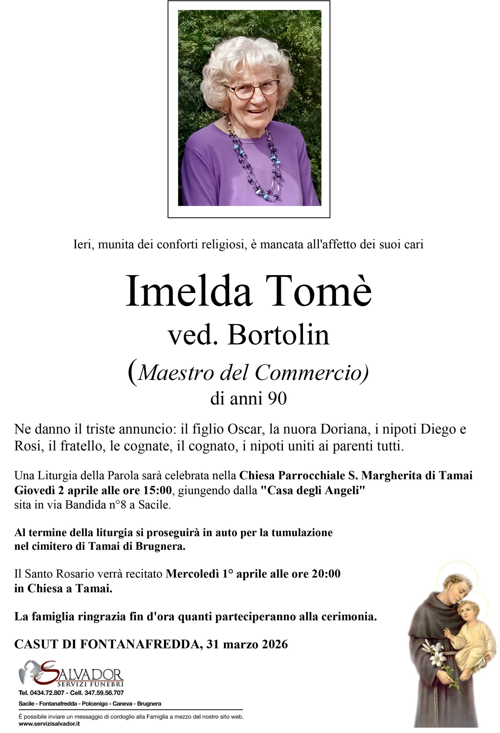 Compila i campi sottostanti e invia il messaggio di cordoglio per Imelda Tomè.