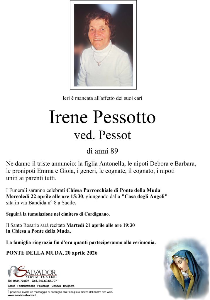 Compila i campi sottostanti e invia il messaggio di cordoglio per Irene Pessotto.