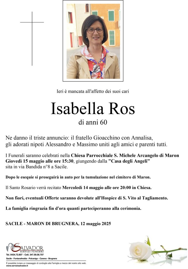 Compila i campi sottostanti e invia il messaggio di cordoglio per Isabella Ros.