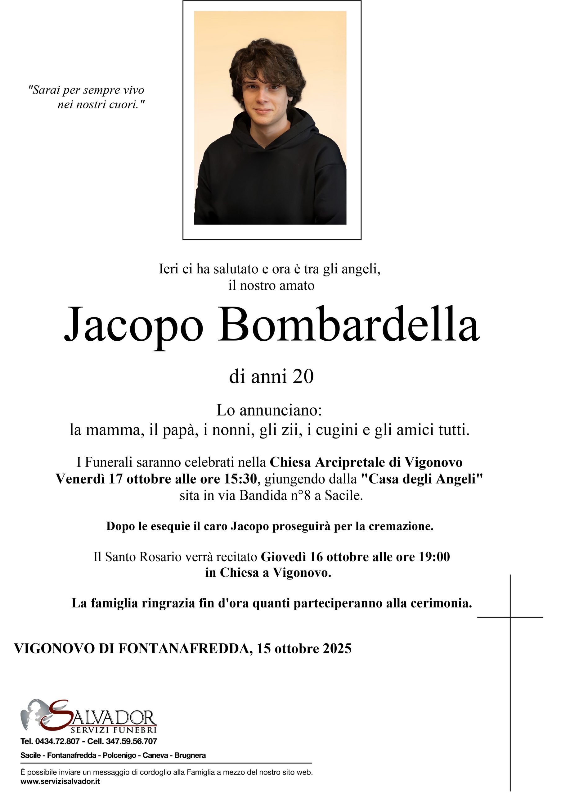 Compila i campi sottostanti e invia il messaggio di cordoglio per Jacopo Bombardella.