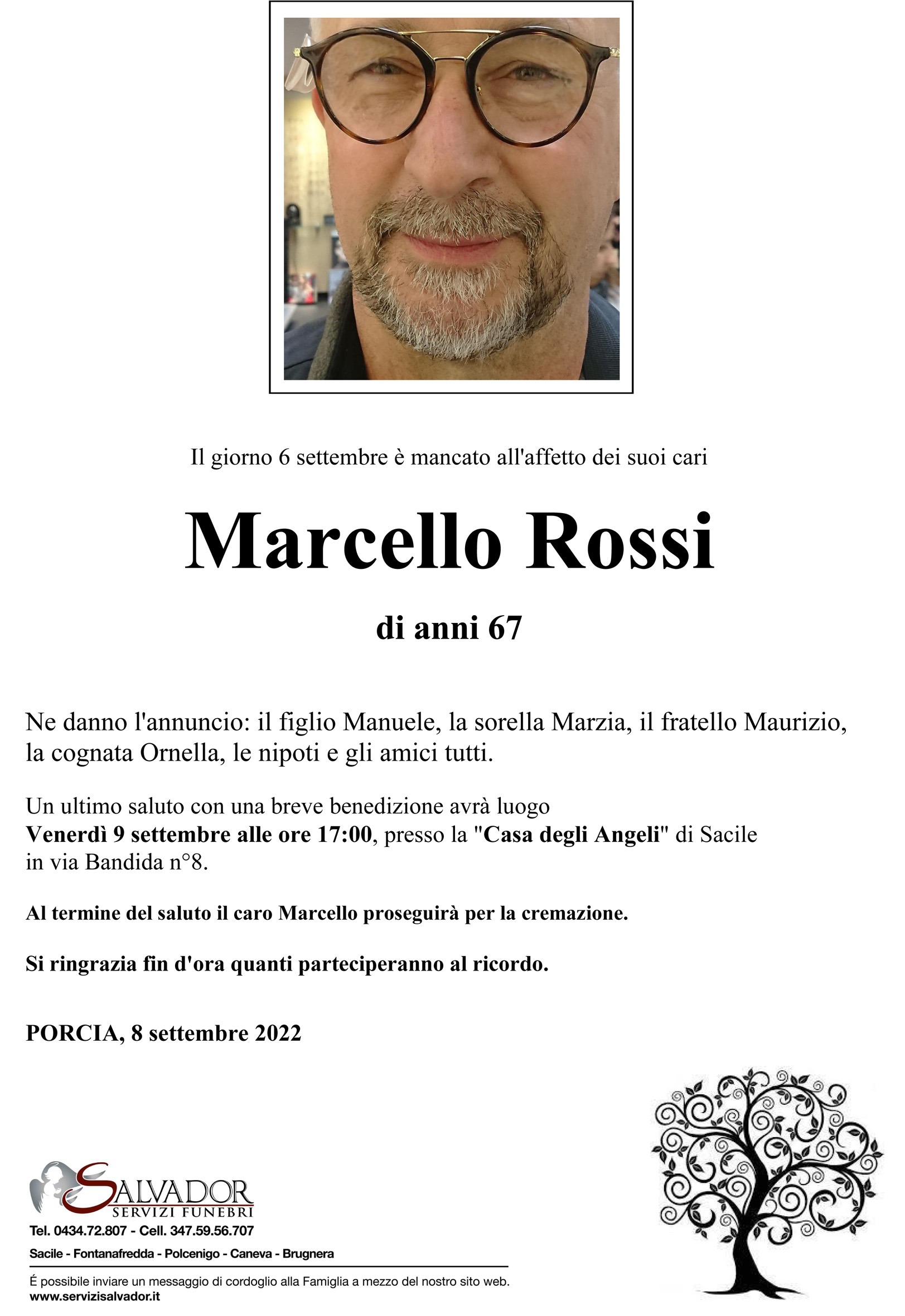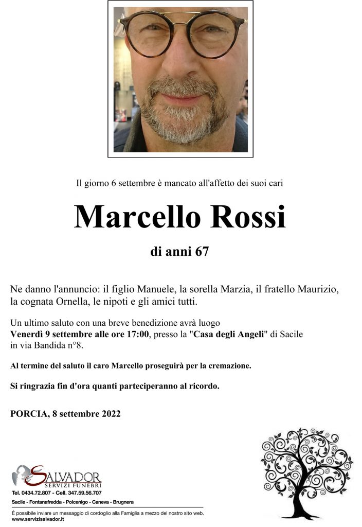 Compila i campi sottostanti e invia il messaggio di cordoglio per Marcello Rossi.