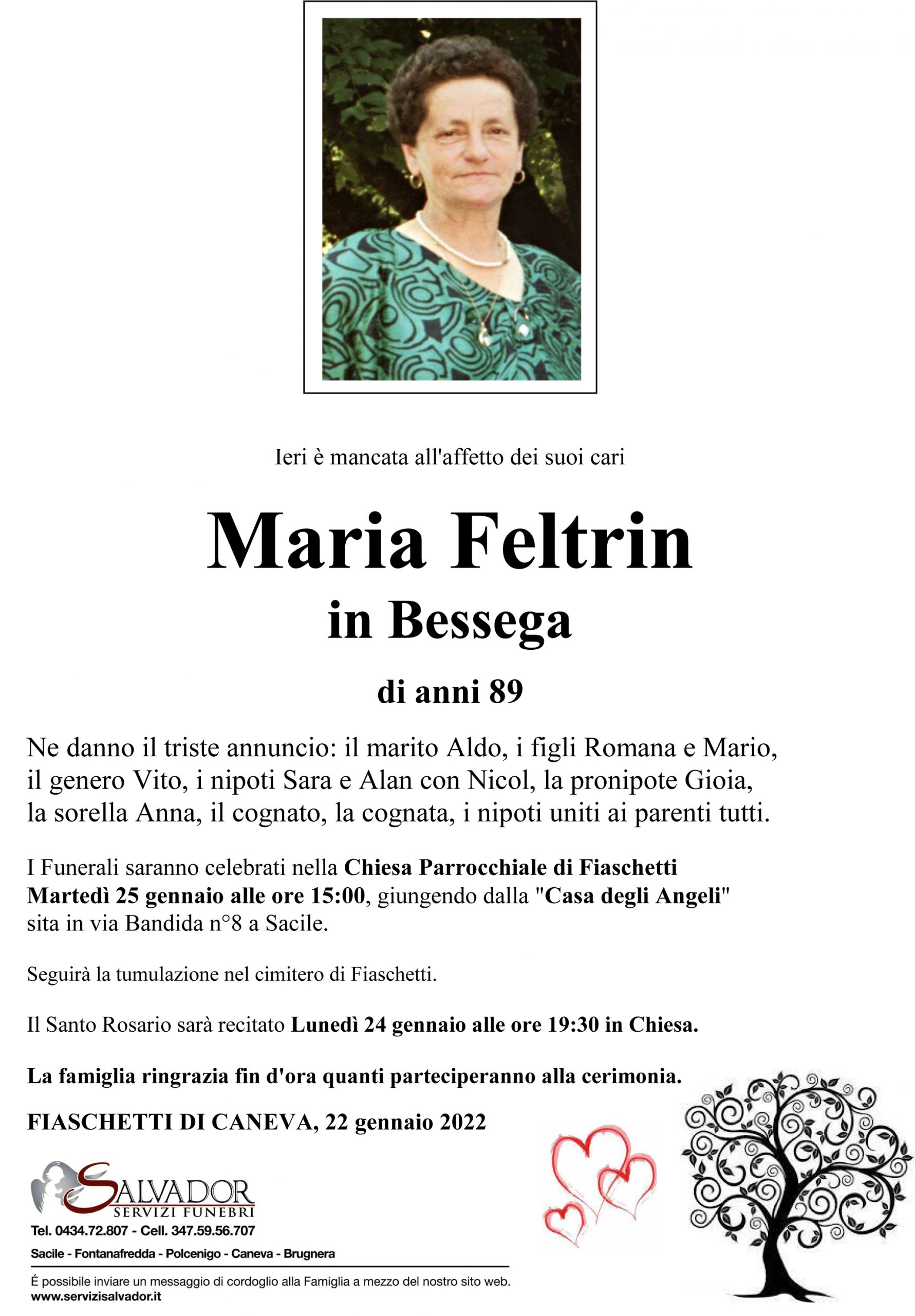 Compila i campi sottostanti e invia il messaggio di cordoglio per Maria Feltrin.