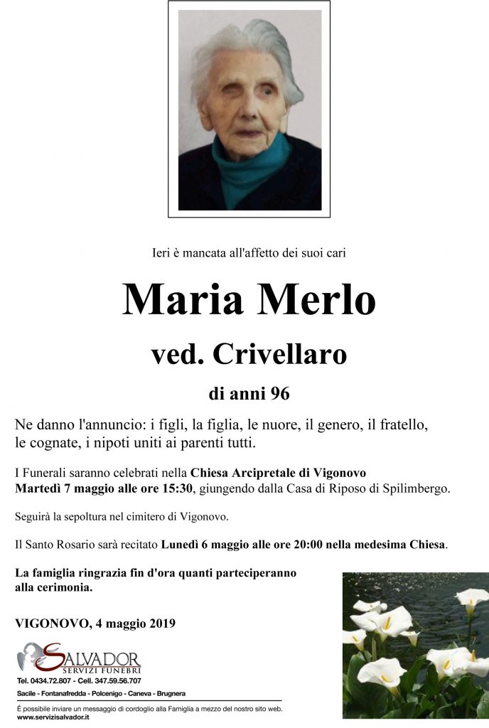Compila i campi sottostanti e invia il messaggio di cordoglio per Maria Merlo.