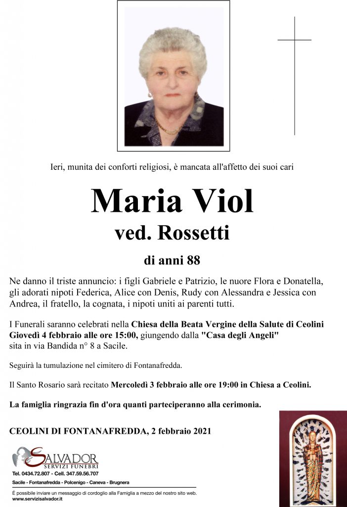 Compila i campi sottostanti e invia il messaggio di cordoglio per Maria Viol.