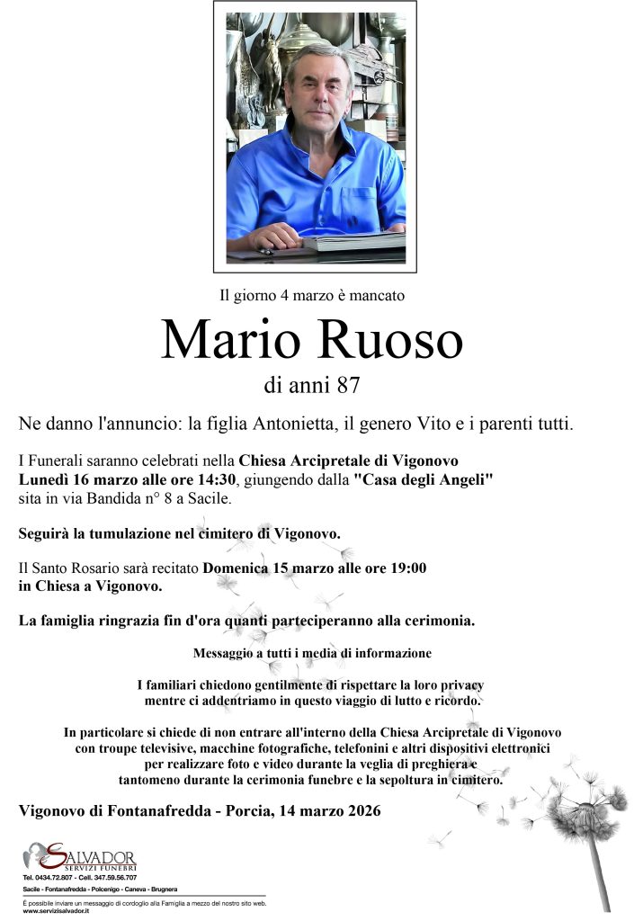 Compila i campi sottostanti e invia il messaggio di cordoglio per Mario Ruoso.