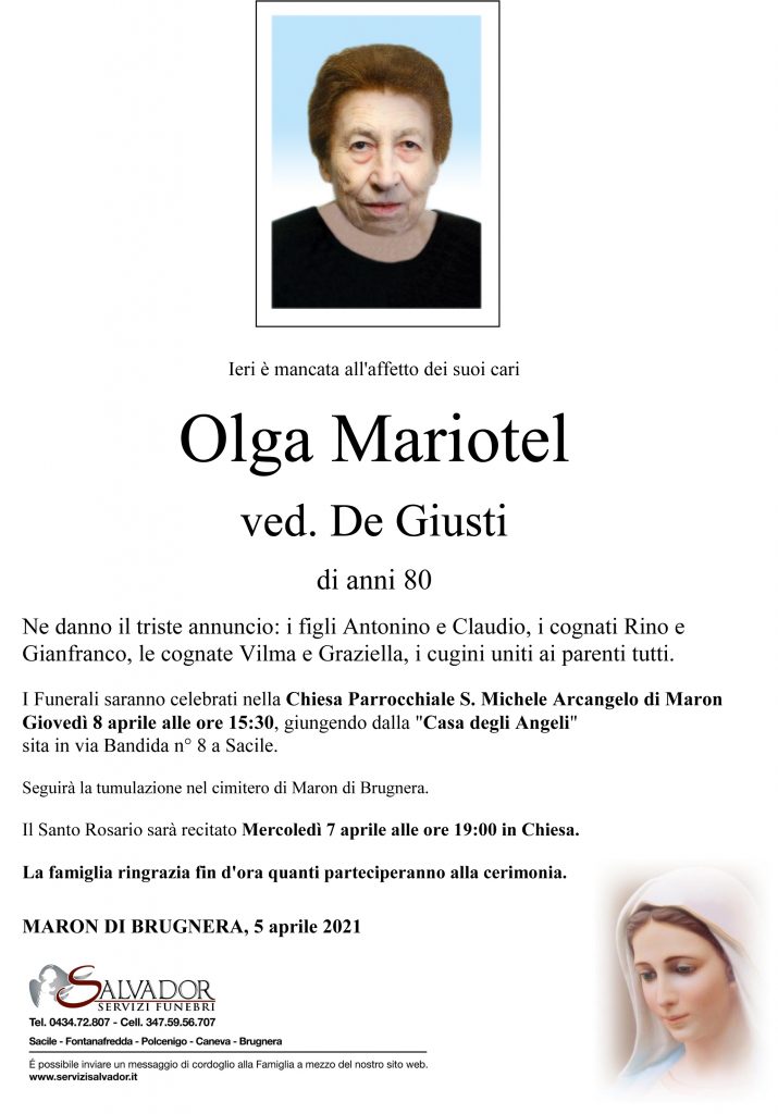 Compila i campi sottostanti e invia il messaggio di cordoglio per Olga Mariotel.