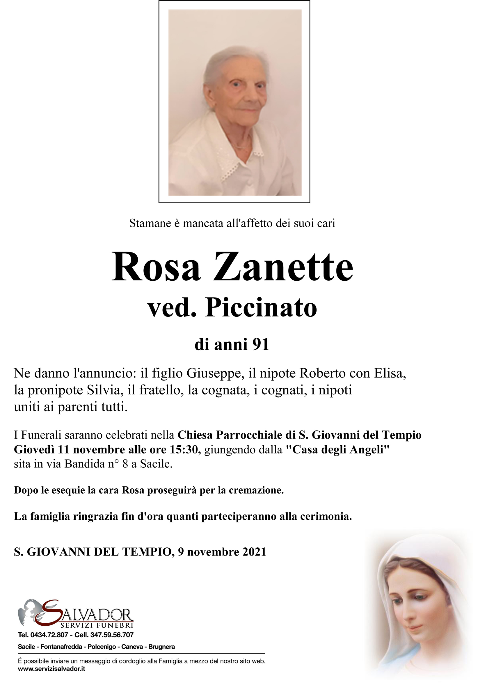 Compila i campi sottostanti e invia il messaggio di cordoglio per Rosa Zanette.