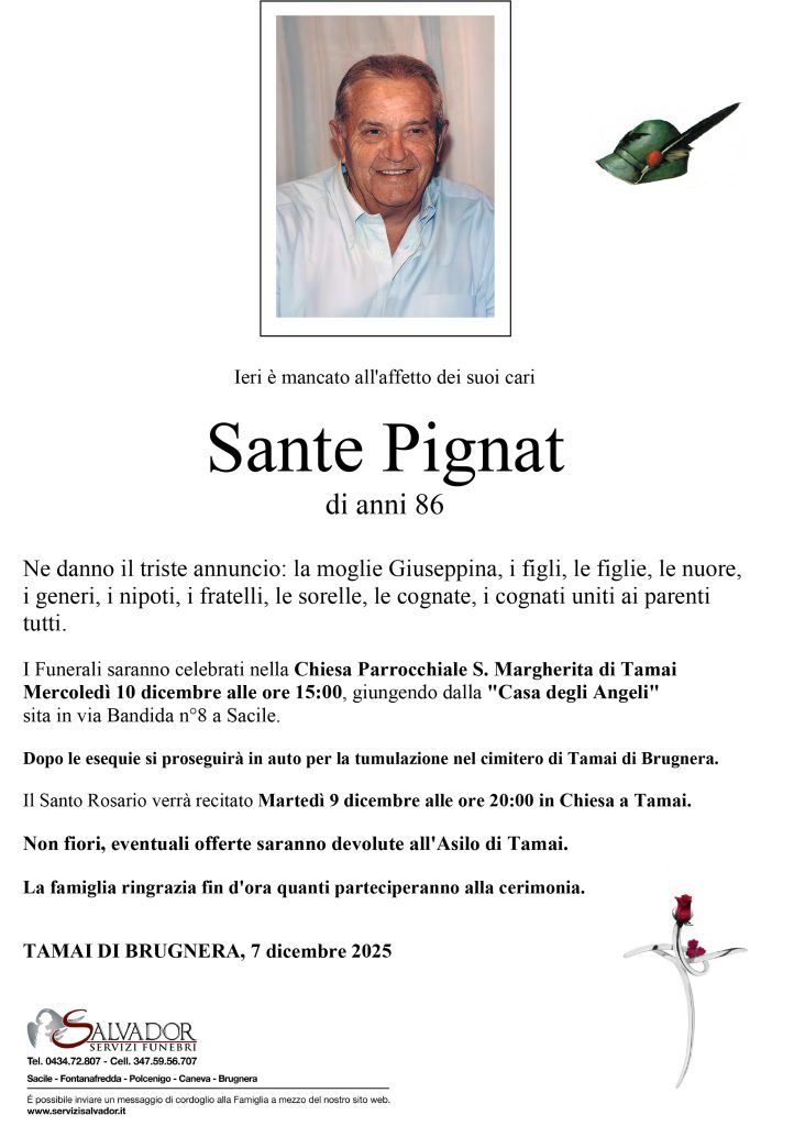 Compila i campi sottostanti e invia il messaggio di cordoglio per Sante Pignat.
