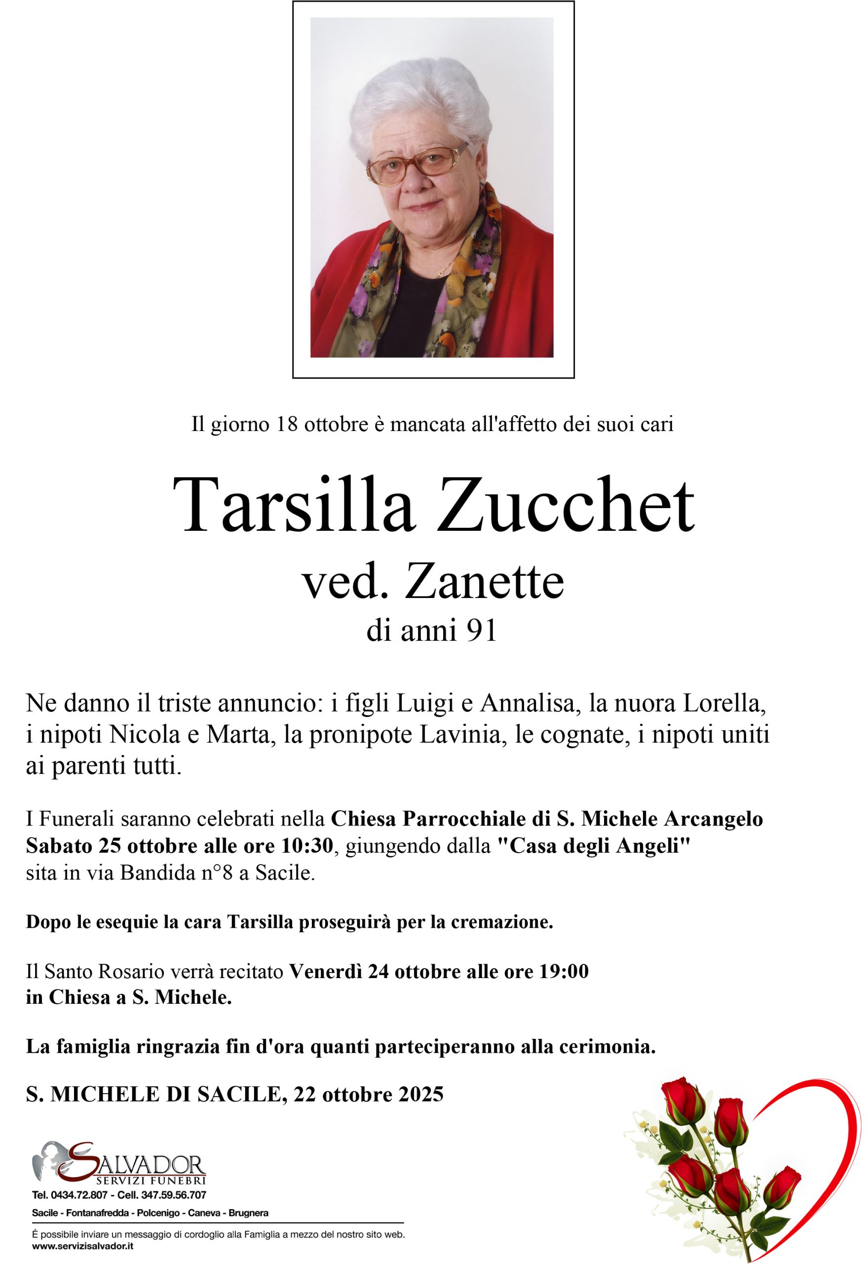 Compila i campi sottostanti e invia il messaggio di cordoglio per Tarsilla Zucchet.