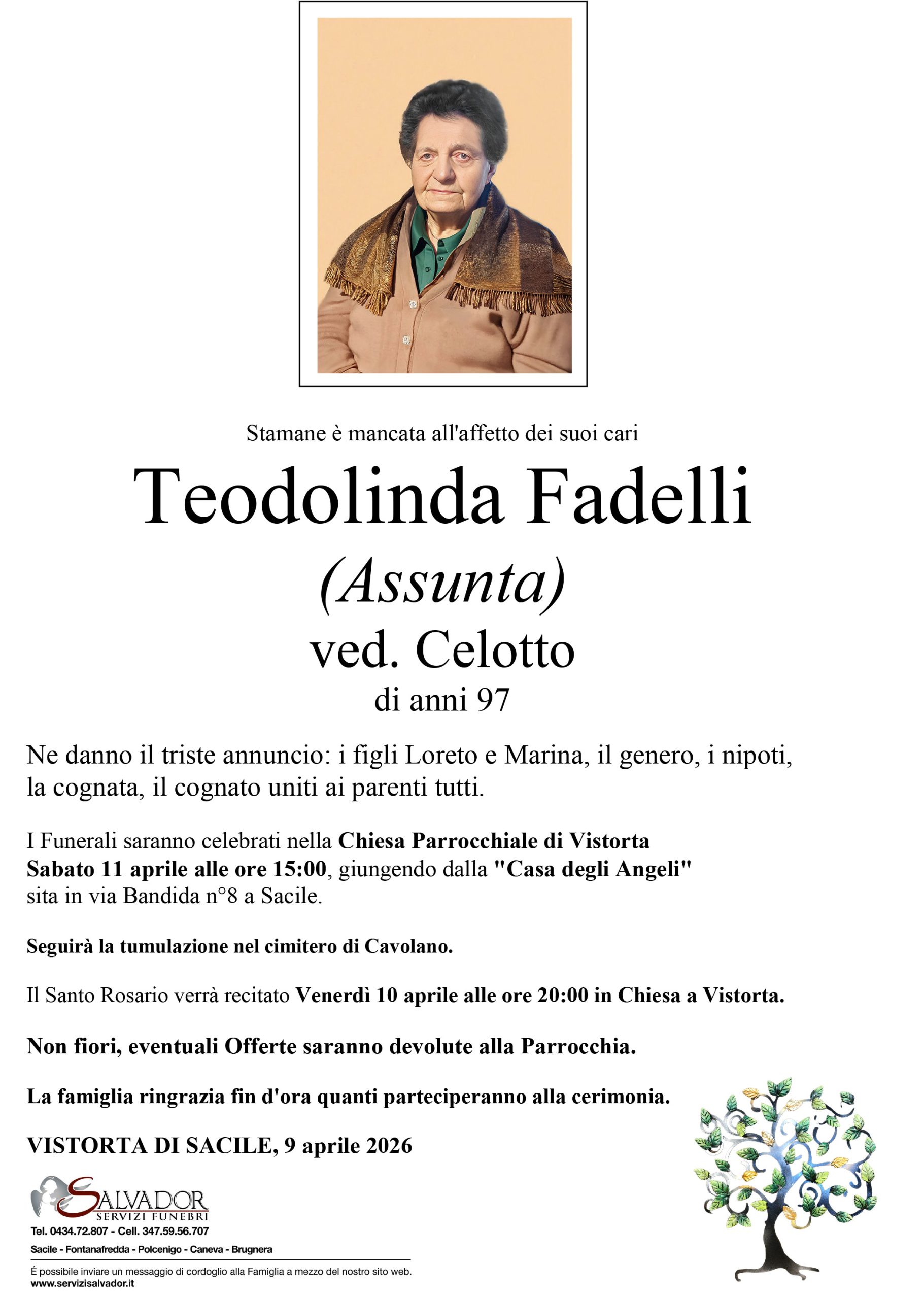 Compila i campi sottostanti e invia il messaggio di cordoglio per Teodolinda Fadelli (Assunta).