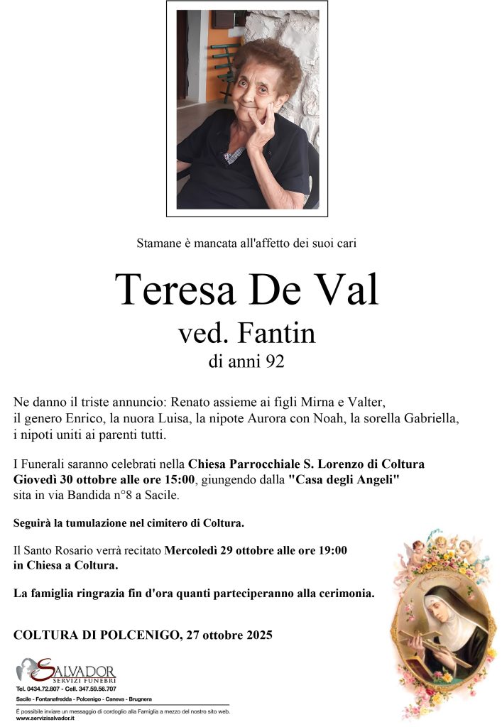 Compila i campi sottostanti e invia il messaggio di cordoglio per Teresa De Val.