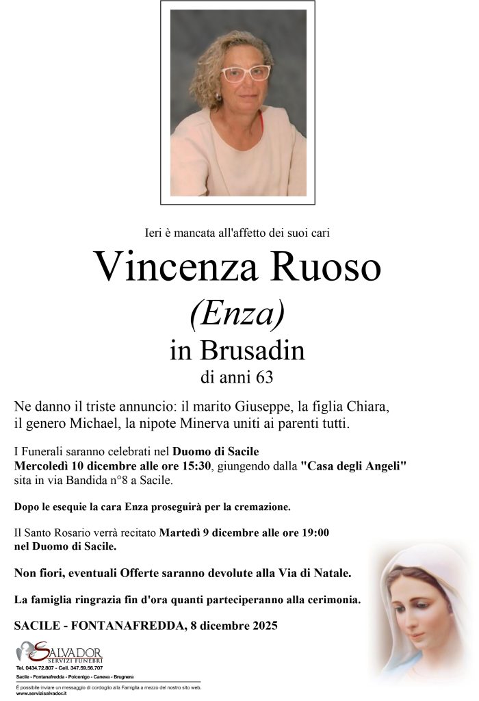 Compila i campi sottostanti e invia il messaggio di cordoglio per Vincenza Ruoso (Enza).