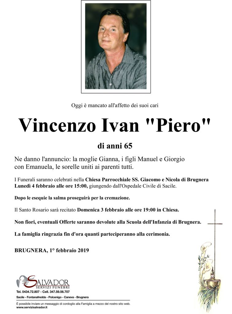 Compila i campi sottostanti e invia il messaggio di cordoglio per Vincenzo “Piero” Ivan.